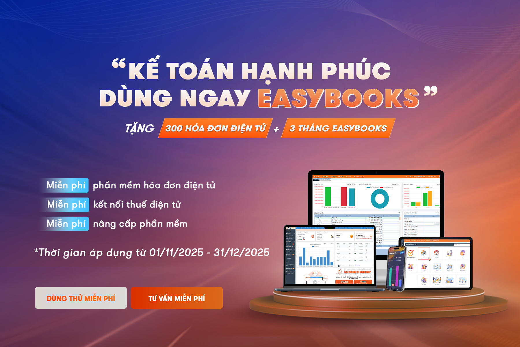 | 1/11/2025 – 31/12/2025 | * Tặng gói 100 số hóa đơn Easyinvoice | Khách hàng mua mới gói phần mềm kế toán Easybooks <3 năm |