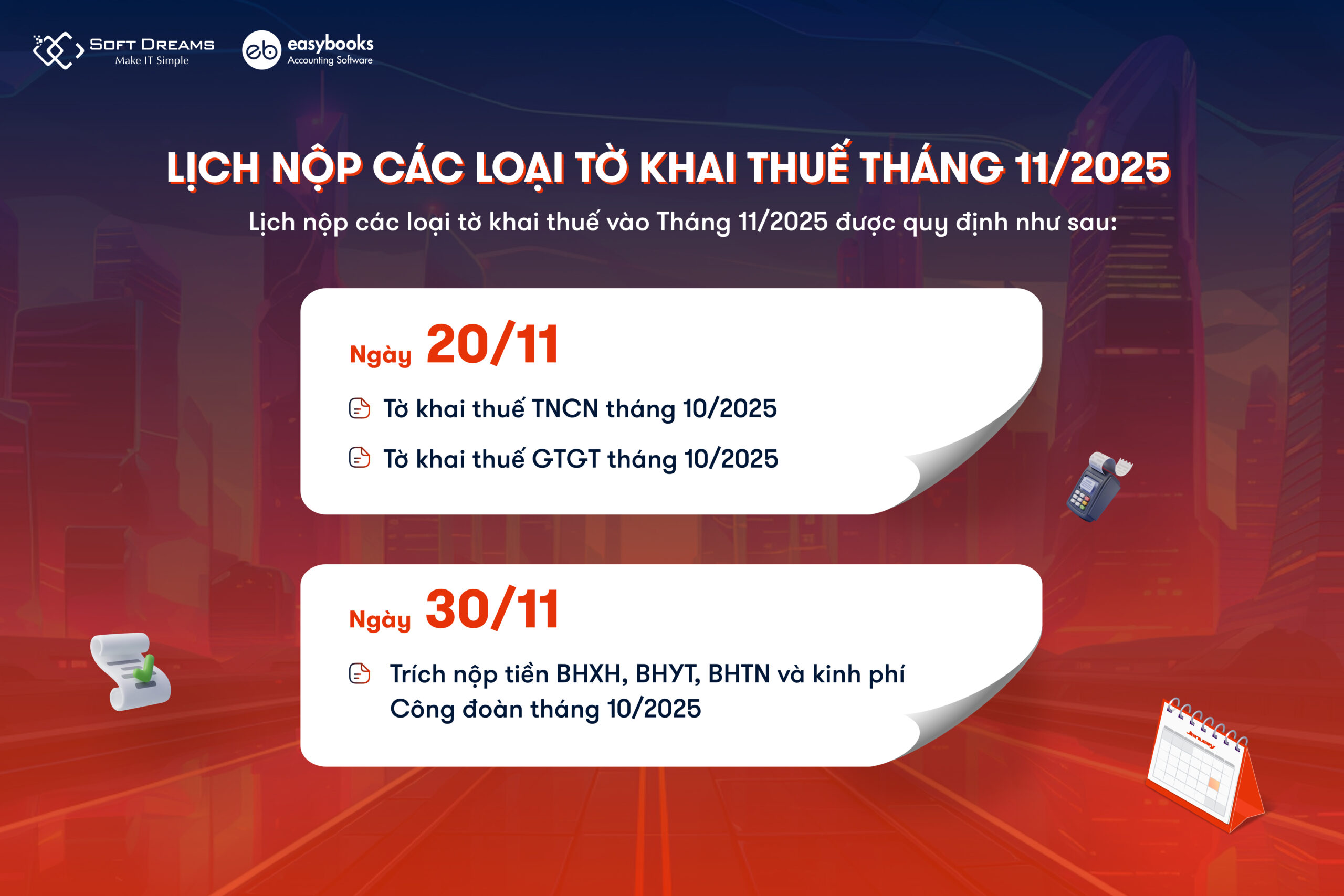 Việc nắm rõ lịch nộp báo cáo thuế đúng hạn là rất quan trọng đối với các doanh nghiệp để tránh bị xử phạt do trễ nộp. Hãy cùng Phần mềm Kế toán EasyBooks tìm hiểu về Lịch nộp báo cáo thuế tháng 11/2025 qua bài viết sau đây.