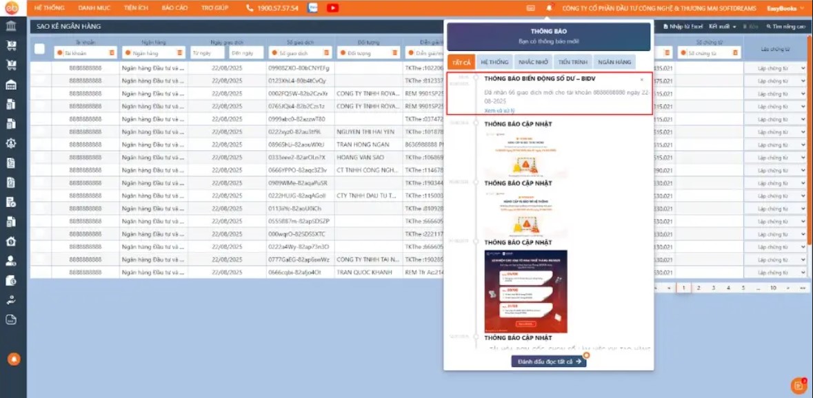 - Tự động lấy dữ liệu sao kê ngân hàng từ hệ thống về EasyBooks để tạo chứng từ liên quan.