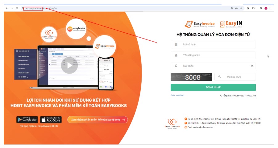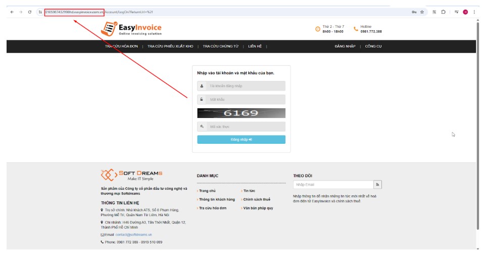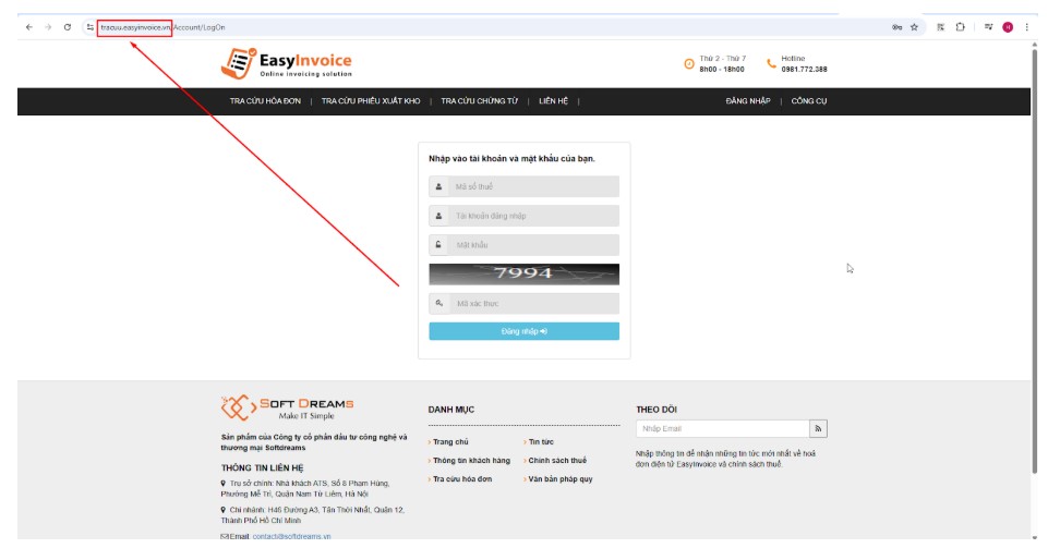 Quý khách thực hiện truy cập theo đường dẫn sau: https://MST.easyinvoice.com.vn