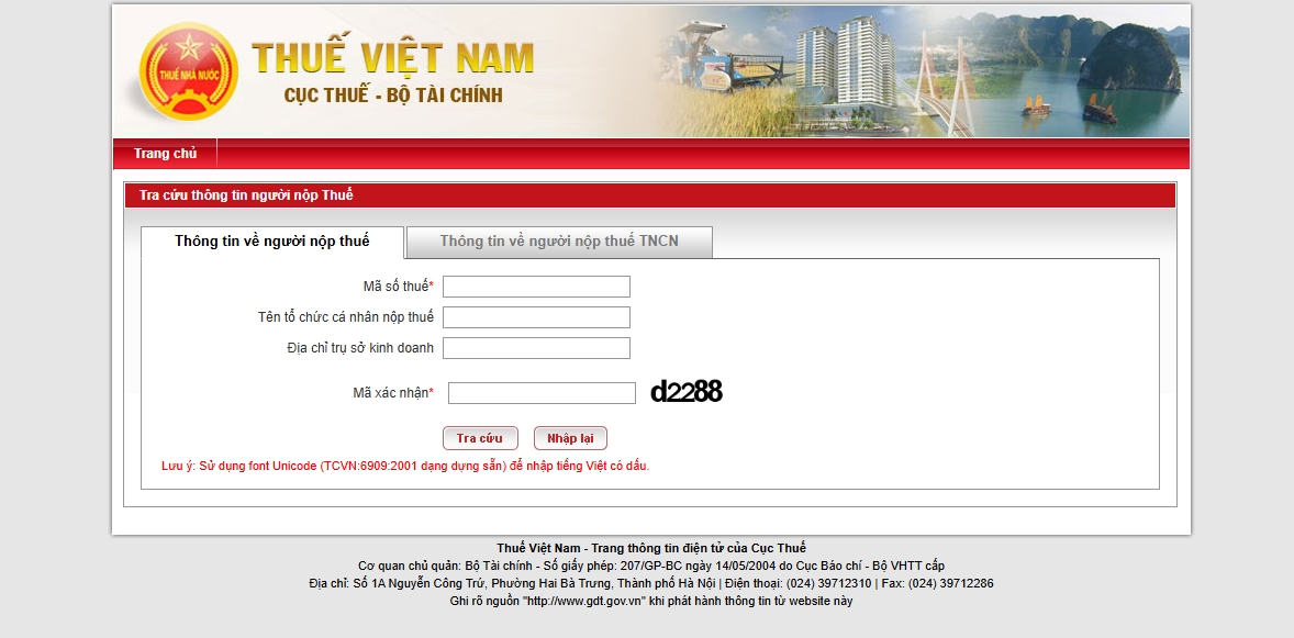 Cách 1: Tra cứu mã số thuế doanh nghiệp trên trang Tổng cục thuế